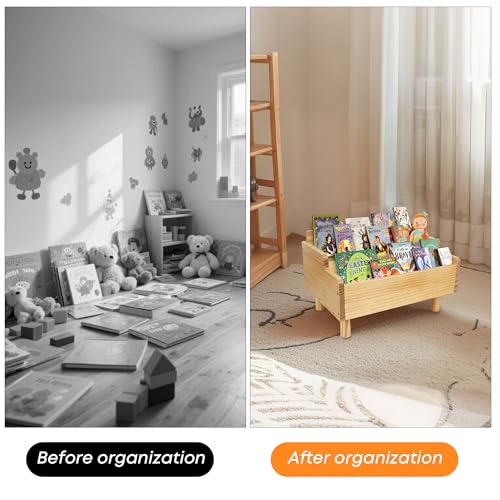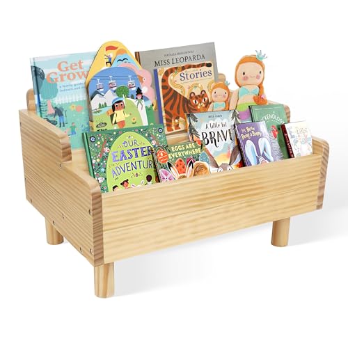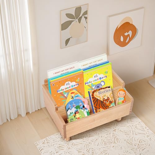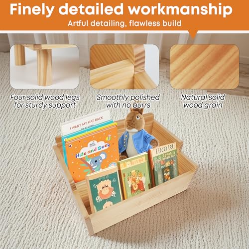 FURAOMEILI - رف كتب للاطفال، رف كتب مونتيسوري صغير للاطفال الصغار، رف كتب الاطفال مع مقسم، حاوية تخزين كتب للاطفال الصغار، حاوية خشبية لغرفة اللعب وغرفة الاطفال والحضانة والفصول الدراسية، خشب الصنوبر (طبيعي)