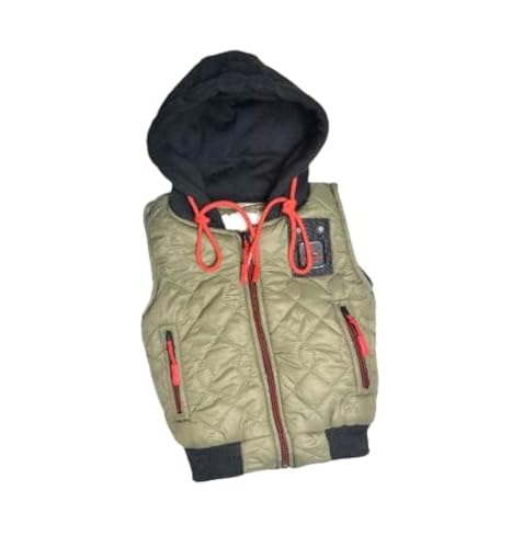 Generic - جاكيت بغطاء للرأس وسوستة مقاوم للماء للأولاد الصغار بتصميم قطة (زيتي، مقاس 1 سنوات)