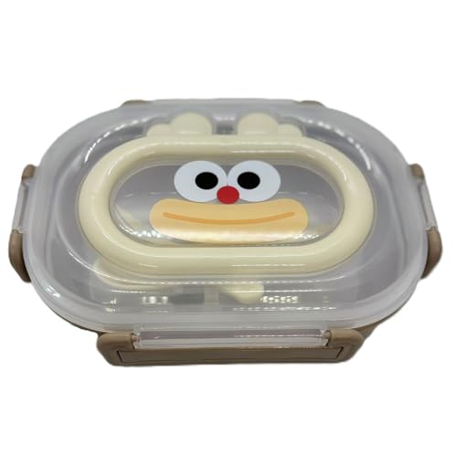 Generic - لانش بوكس للاطفال بتصميم كرتوني مع ادوات طعام، 2 حجرة، بني وبينك (بني)