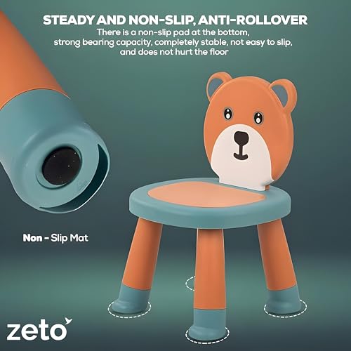 Generic - كرسي للاطفال - تصميم دب برتقالي وازرق نابض بالحياة مع قاعدة مضادة للانزلاق للاطفال من سن 1 الى 5 سنوات يتميز بتصميم حيوانات كرتونية مرحة لغرف اللعب