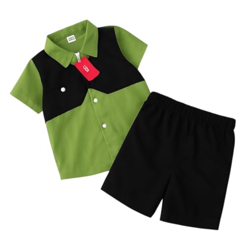 Generic - طقم ملابس أطفال، قميص بولو أخضر وأسود، مع شورت أسود قصير