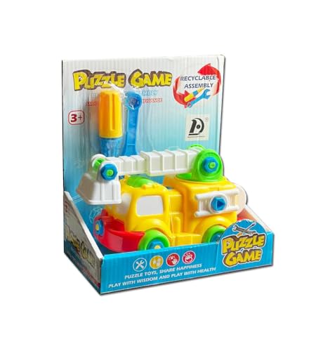 - مزايا التصميم: هيكل سيارة أصفر ساطع مع وصلة سلم بيضاء، وعجلات متعددة الألوان، وأجزاء متحركة