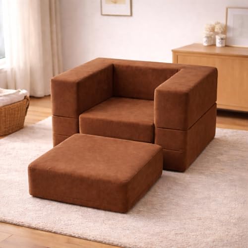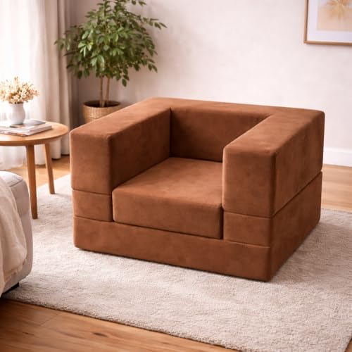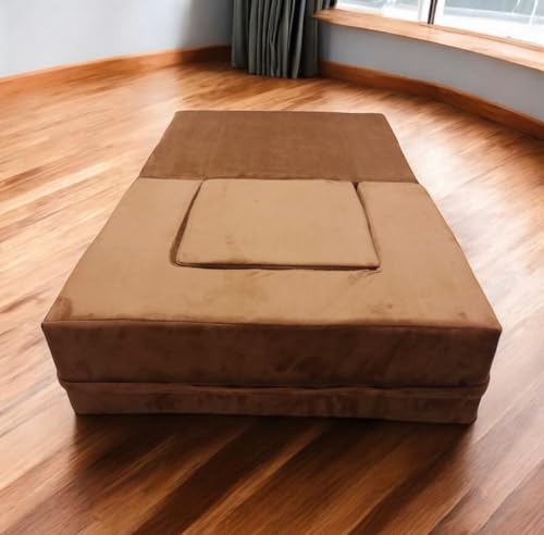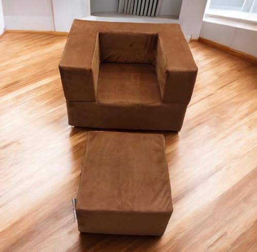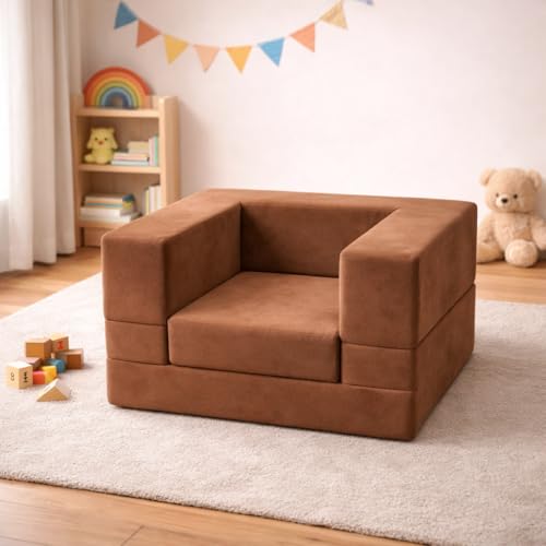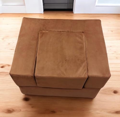 Generic - كنبة أطفال قابلة للتحول لسرير وكرسي – مصنوعة من فوم عالي الكثافة 40 كجم/ م³ وقماش قطيفة ناعم، إسفنج متين متوسط الصلابة، ارتفاع المقعد 40 سم، العمق 55 سم، سرير كامل 1.10 م ×65 سم، بني