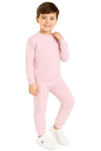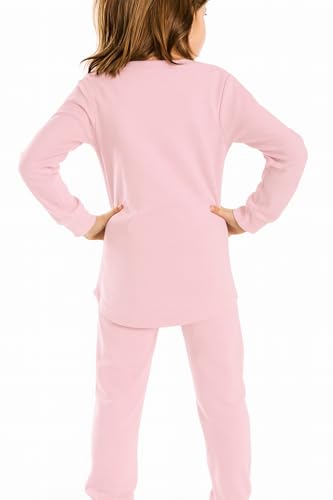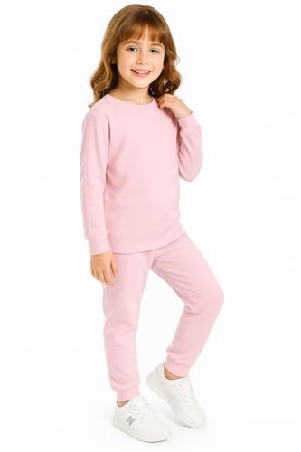 Generic - طقم بيجامة قطن للاطفال، بينك، تيشرت باكمام طويلة وبنطلون رياضي، ملابس رياضية كاجوال للاطفال - طقم بيجامة قطنية للاطفال، وردي، مكون من تيشيرت باكمام طويلة وياقة دائرية وبنطلون رياضي، لون زهري