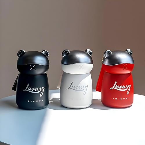 Generic - كوب للاطفال - زجاجة محمولة بتصميم حيوانات مرحة على شكل دب لطيف مضاد للتسرب، رفيق مدرسي متين للمشروبات الدافئة، وحدة واحدة سعة 120 مل باللونين الابيض والاسود (3 قطع ابيض واسود واحمر)