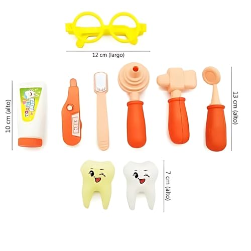 - أدوات محاكاة: مجموعة من الأدوات الطبية التعليمية بطول 10-13 سم، تشمل فرشاة أسنان ومرآة فحص ومعجون أسنان