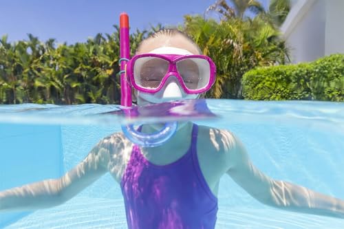 - آمنة ومحكمة: مصنوعة من مادة متينة وخالية من اللاتكس لتسهل على طفلك الاحتفاظ بنظارته لساعات لا نهاية لها من اللعب المتواصل في البحر أو حمام السباحة تتضمن قطعة فم للغطس ناعمة وبملائمة مريحة