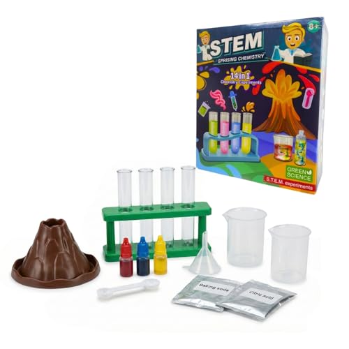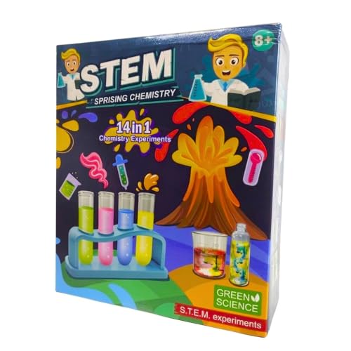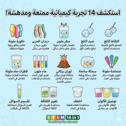 Generic - مجموعة تجارب الكيمياء التعليمية للأطفال، 14 تجربة علمية، تشمل ثوران البركان وتوصيل الألوان، لتنمية مهارات التفكير والابتكار