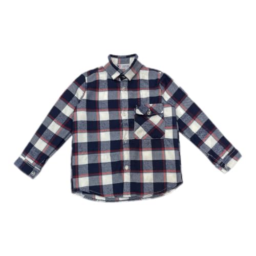 Generic - قميص جوخ اطفال خريفي شتوي كاروهات بأكمام طويلة، كحلي وأبيض وأحمر