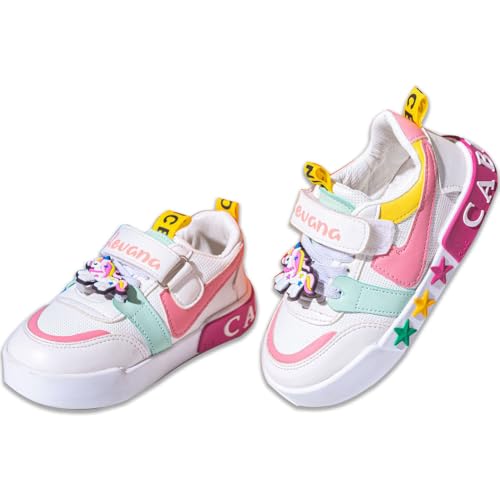 Generic - حذاء رياضي عصري للأطفال بنعل سميك وشريط فليكرو ومزين بتصميم فراشة، أبيض ومتعدد الالوان وبلمسات بلون وردي وازرق وأصفر