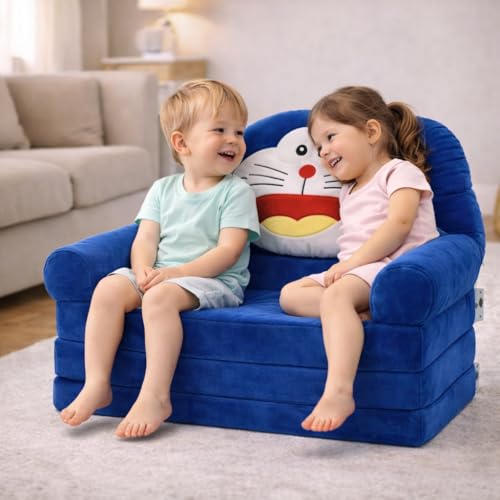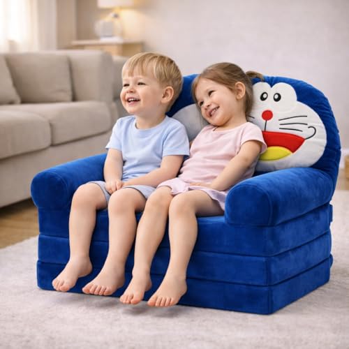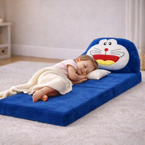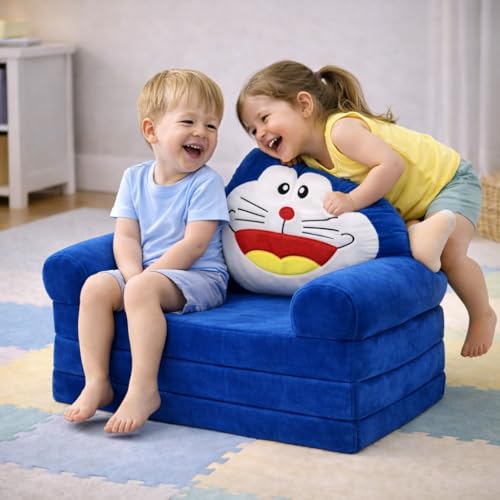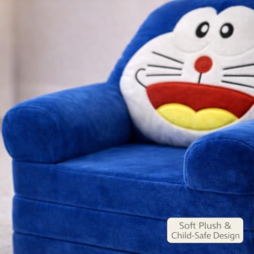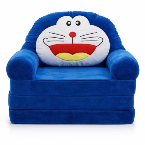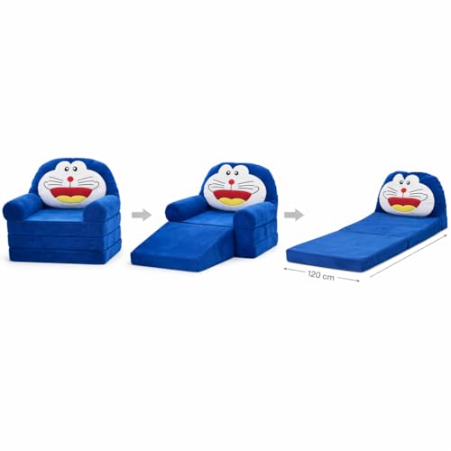 ماجنوليا تويز - كرسي اريكة وسجادة نوم قابلة للطي للاطفال - كرسي بذراعين 2 في 1 من القطيفة الناعمة للجلوس والاسترخاء والقيلولة (تصميم دورايمون) (ازرق كحلي)