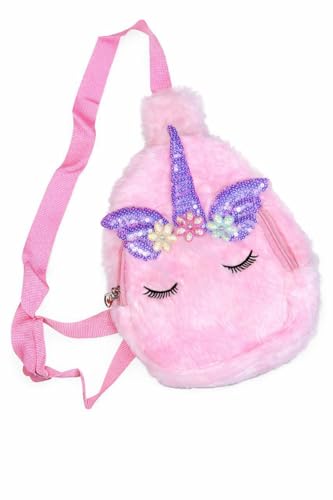 Generic - حقيبة كروس وكتف يونيكورن فرو للأطفال، حقيبة كروس بتصميم يونيكورن مع ترتر وزهور، مناسبة للعيد والخروج،