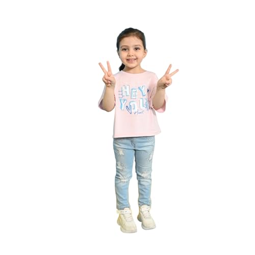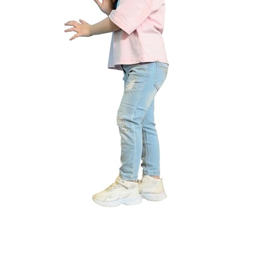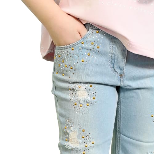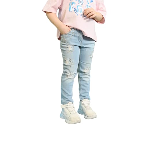 Generic - بنطلون اطفال بناتي جينز أزرق فاتح بخياطه بارزه اسفل الجيب 25 7-8 سنوات