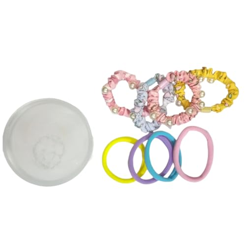 Generic - ربطات شعر للأطفال، مجموعة متنوعة الألوان، مزينة باللؤلؤ، أربطة مطاطية، وردي وأصفر وأزرق وبنفسجي، في علبة تخزين شفافة