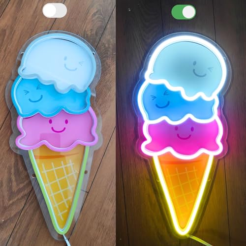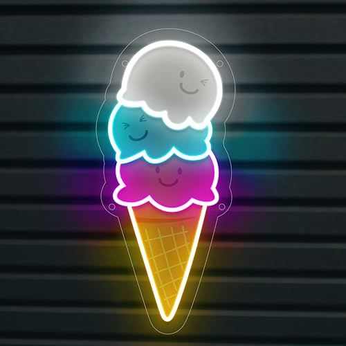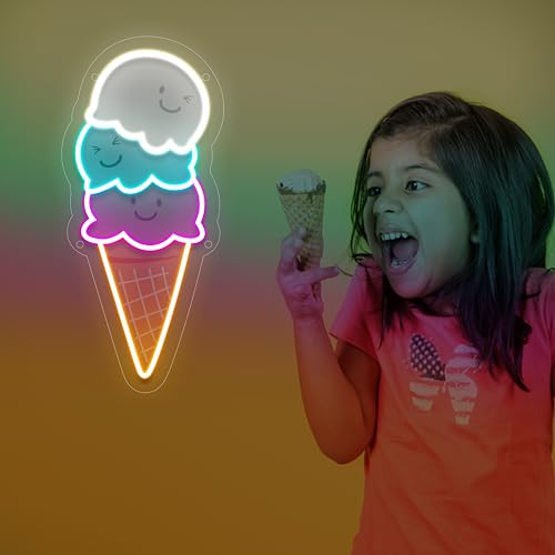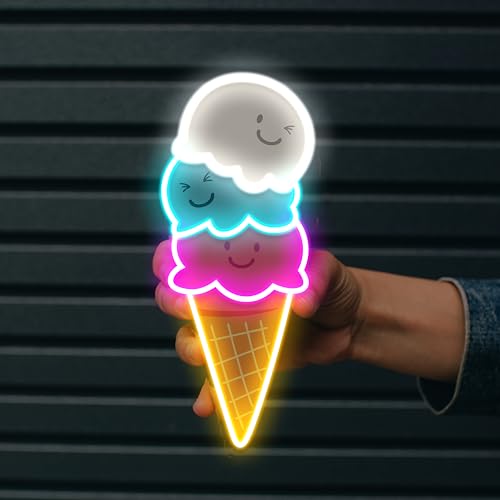 ILERY - لافتة نيون للاطفال بتصميم مخروط على شكل ايس كريم ومقهى ومطعم