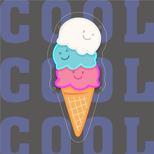 - عرض نابض بالحياة: تتميز لافتة النيون على شكل مخروط الآيس كريم هذه بشاشة LED متعددة الألوان على ورقة أكريليك لجذب الانتباه للإعلان أو الديكور.