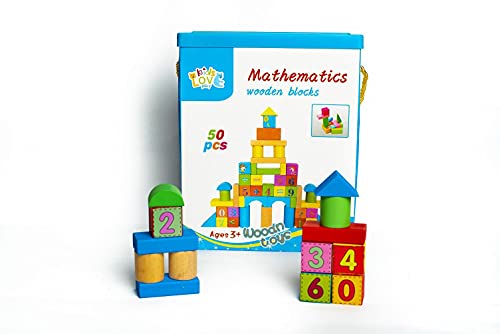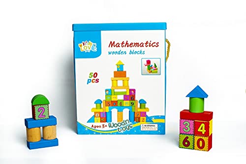 Kids Love Play - لعبة مكعبات خشبية للرياضيات (50 قطعة) للاطفال بعمر 3 سنوات فما فوق، بلاستيك