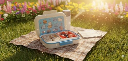 Generic - صندوق غداء للاطفال مع مقصورات مقسمة، متعدد الالوان، حاوية مانعة للتسرب، ادوات مدمجة، تصميم كرتوني