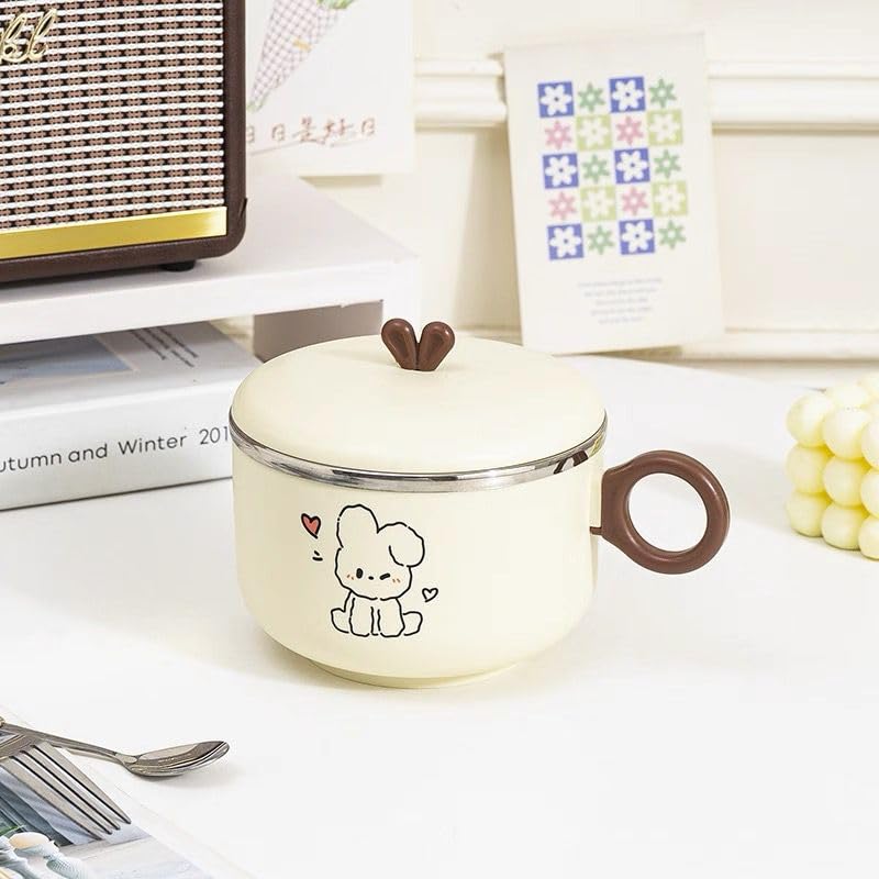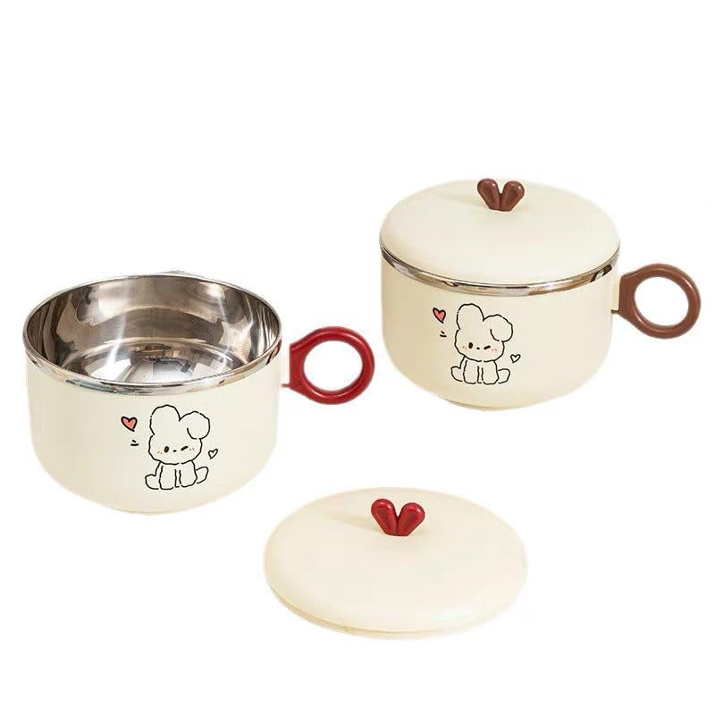 Generic - صندوق غداء للاطفال مع جزء داخلي من الستانلس ستيل - حاوية طعام كرتونية لطيفة على شكل ارنب مع غطاء
