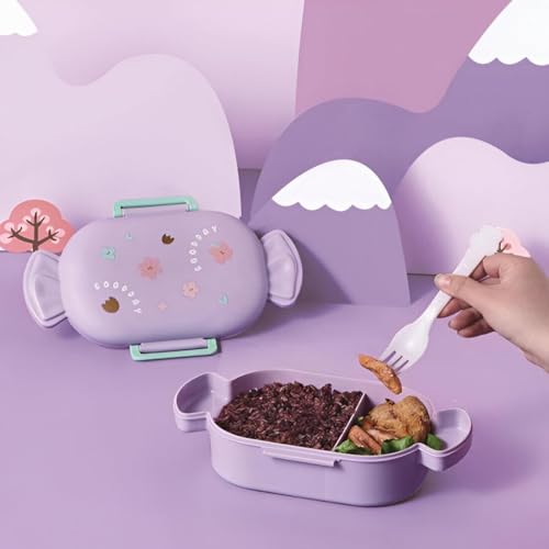 Generic - حقيبة غداء للاطفال - صندوق طعام مشرق وجذاب مع قسمين قابلين للتعديل، بما في ذلك الاواني، تصميم امن للاستخدام في الميكروويف للايام المدرسية المزدحمة والوجبات الخفيفة الابداعية