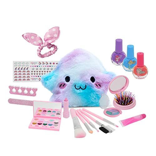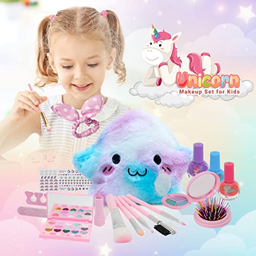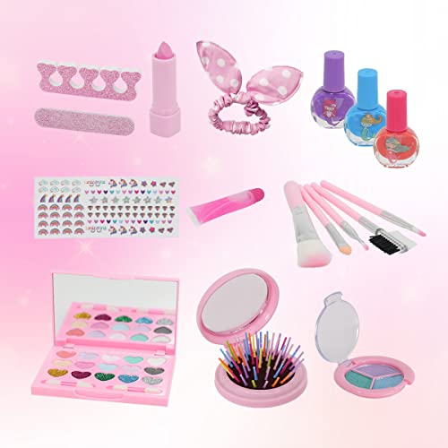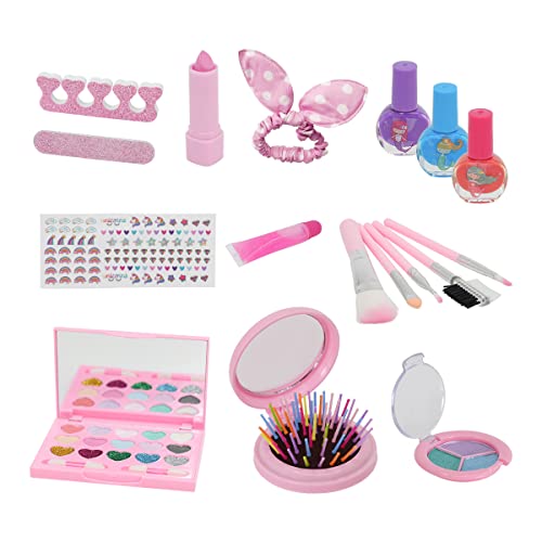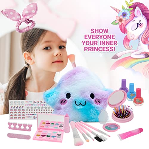 GHAZAL - شنطة أدوات مكياج للأطفال، مجموعة ألعاب مكياج حقيقية قابلة للغسيل للبنات فوق 5 سنوات مع شنطة مستحضرات تجميل لطيفة للأميرات واللعب التظاهري