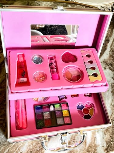 Generic - مجموعة مكياج للاطفال - محتويات شنطة تجميل، ظلال عيون لامعة وملمع شفاه واسفنجة لوضع طلاء الاظافر الكل في شنطة انيقة وسهلة الحمل!