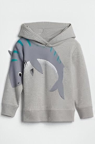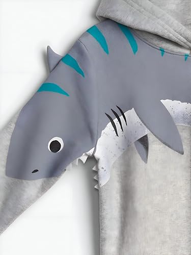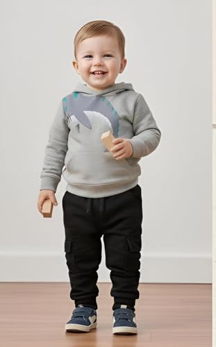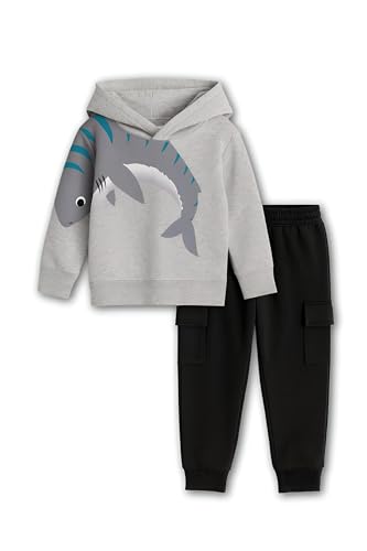 Generic - طقم ملابس للاطفال - سويت شيرت قطني رمادي بتصميم سمكة قرش وسروال كارجو اسود، مقاس مريح للاطفال من سن 4 الى 10 سنوات، مرح وعملي
