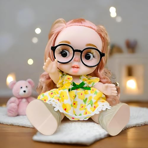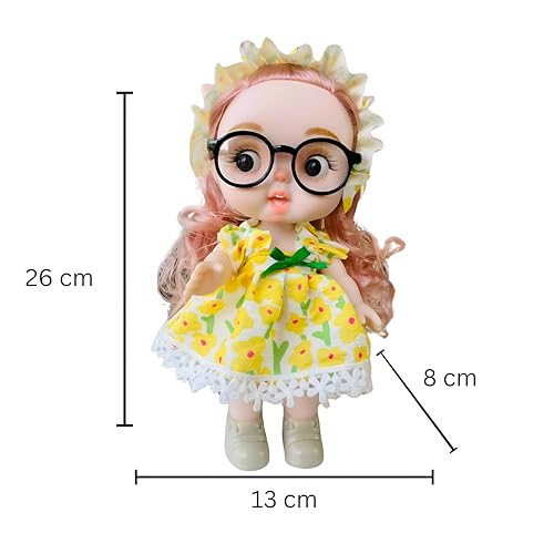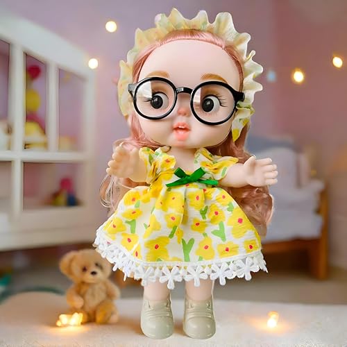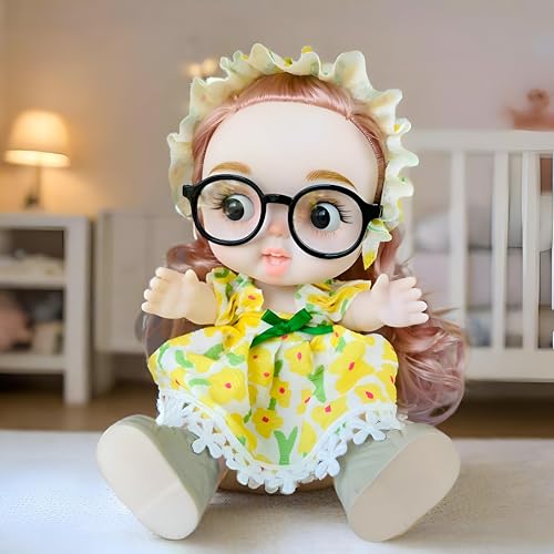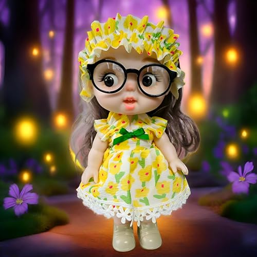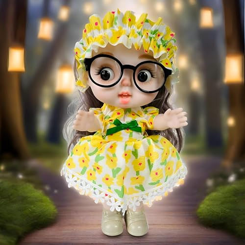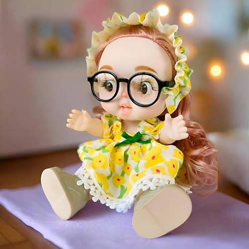 Generic - عروسة لعب للأطفال بفستان أصفر أنيق بنمط زهور بنظارة أنيقة وملامح وجه رائعة لتعزيز اللعب الخيالي واللحظات المبهجة