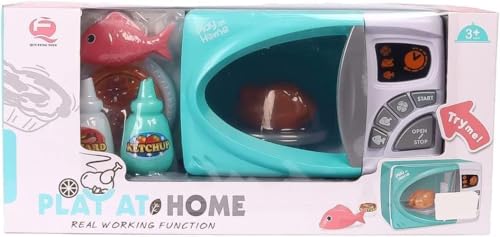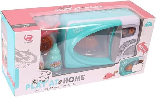 Generic - مجموعة ألعاب ميكروويف للمطبخ، ألعاب طبخ تظاهري مع ملحقات لأطفال من عمر 3 سنوات فما فوق، تركواز