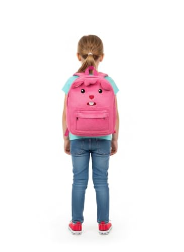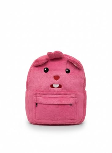 Generic - شنطة ظهر قطيفة للاطفال بتصميم حيوان زهري منفوش، شنطة مدرسية لطيفة مع جيب امامي، احزمة قابلة للتعديل للاطفال، 37 × 27