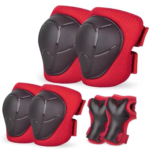 Dream Land - مجموعة معدات واقية للأطفال، 6 قطع وسادات أمان مع واقيات للركبة والكوع والمعصم، أحمر وأسود، قابلة للتعديل