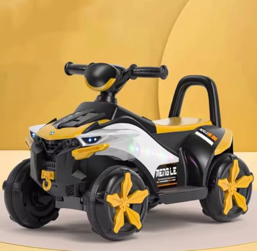 Generic - دراجة رباعية للركوب للأطفال، أسود وأصفر، سيارة دفع بـ4 عجلات مع مشغل موسيقى، إضاءة ليد، مدخل USB وAUX (أصفر)