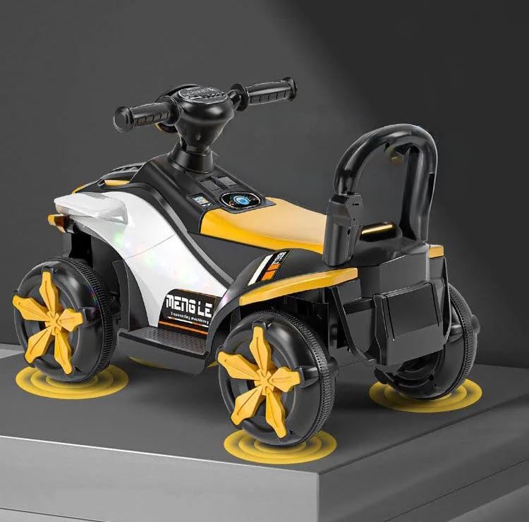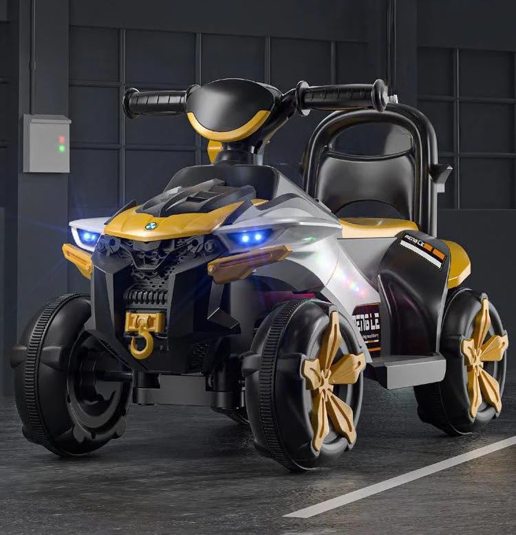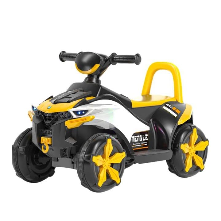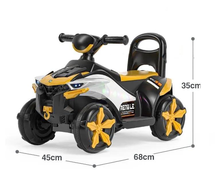 - تصميم واقعي للركوب: تتميز دراجة ايه تي في الرباعية باللونين الأسود والأصفر بتصميم أصلي مع مصابيح ليد أمامية وملصقات رياضية وهيكل متين بأربع عجلات لتجربة ركوب مثيرة.