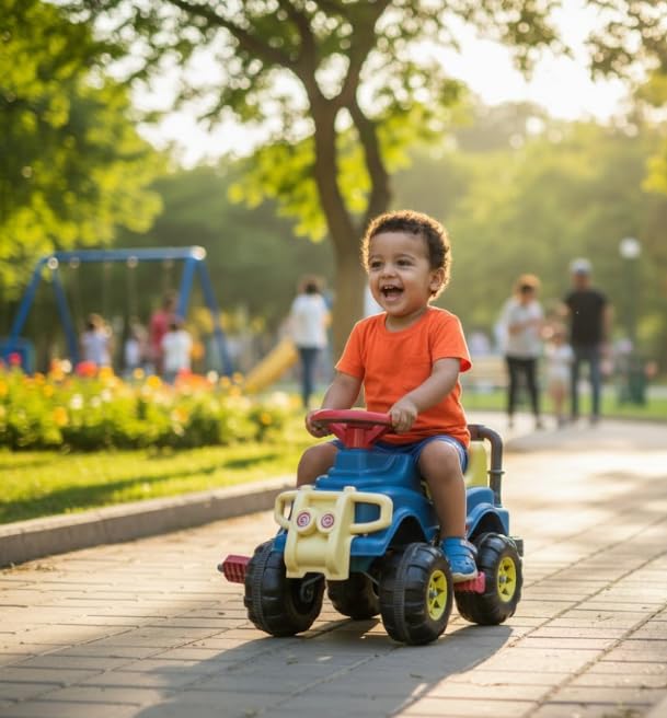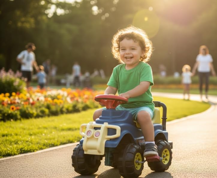 - تصميم عملي: تتميز بطارة دركسيون تعمل للتحكم في الاتجاه ومسند ظهر مريح لدعم الجلوس المناسب أثناء اللعب، مناسبة للأطفال الصغار الذين يتعلمون الركوب.