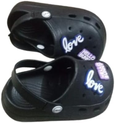 Generic - صندل أطفال بلاستيك أسود، مقاوم للماء، مزين بتصميم لوف مضيء، مقاس ٢٧-٢٨