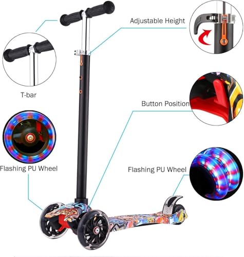Generic - سكوتر أطفال بثلاث عجلات و4 إعدادات صغيرة قابلة للتعديل مع عجلات مضيئة بإضاءة ليد (النمط: تي واي)