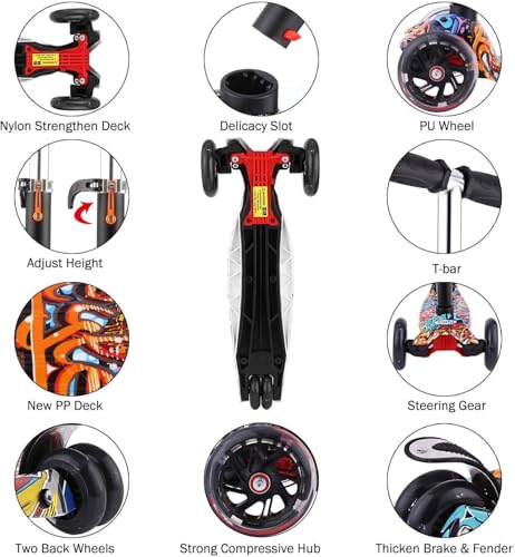 - 【تصميم مستقر بثلاث عجلات】 - تصميم فريد من نوعه بثلاث عجلات للركل والانطلاق يجعل السكوتر الخاص بنا مستقرًا وآمنًا. لا حاجة لحامل سكوتر الدفع أو لركوب غير متوازن. سطح واسع وتصميم 3 عجلات تجعل من ركوب السكوتر أمرًا ممتعًا وسهلًا للأطفال من أي مستوى مهارة. ببساطة اقفز وابدأ بالقيادة.