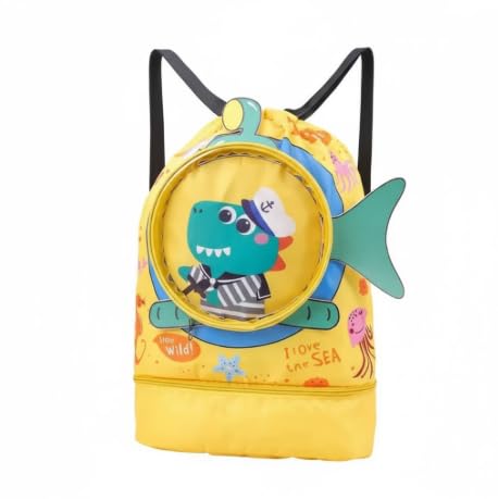 Generic - شنطة ظهر للاطفال بنمط الحياة البحرية، تصميم سمكة صفراء مع نافذة ديناصور ثلاثية الابعاد، 46 × 34 سم، نمط اي لوف ذا سي، اشرطة قابلة للتعديل