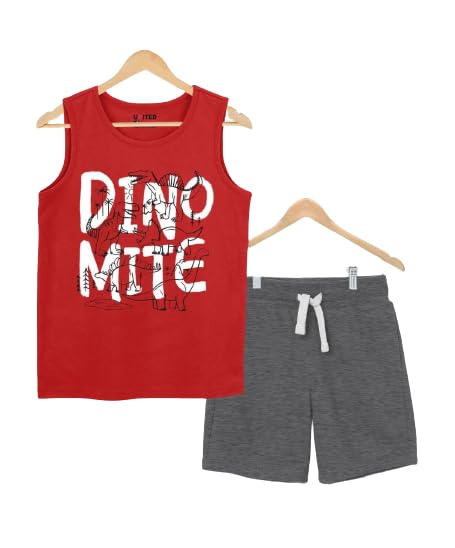 Generic - طقم اطفالي مكون من قطعتيين تيشرت كت احمر وشورت رصاصي (6 سنيين)