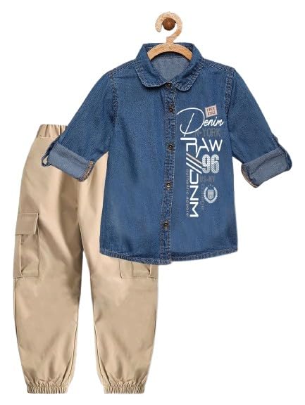 Generic - طقم اطفالي مكون من قطعتيين شميز جينز غامق وبنطلون بيج (6 سنيين)