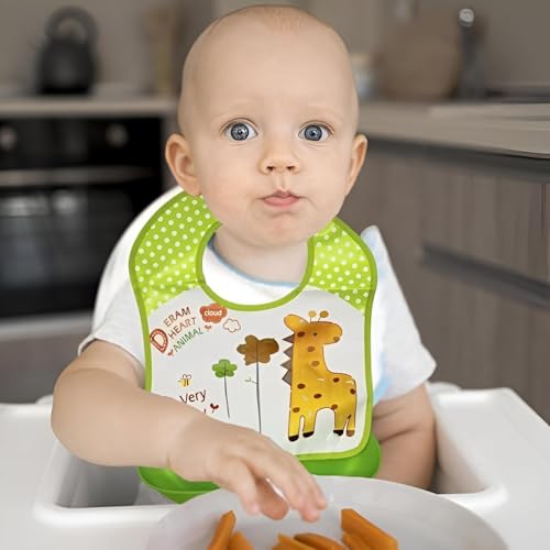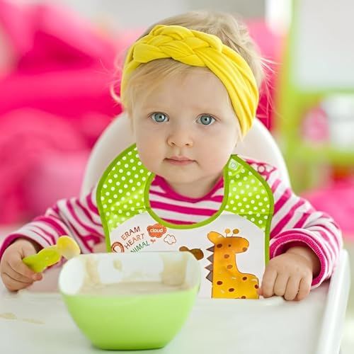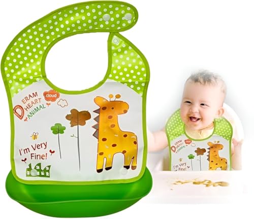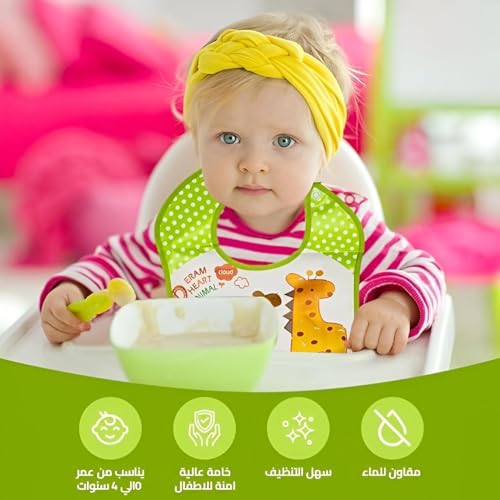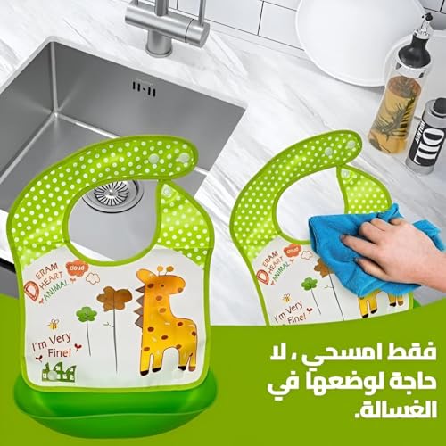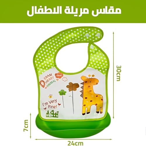 Generic - مرايل سيليكون للاطفال - مريلة بطباعة كرتونية لطيفة مع اغلاق قابل للتعديل، مقاومة للماء وخفيفة الوزن، مناسبة لأوقات الوجبات ووقت البطن للاطفال