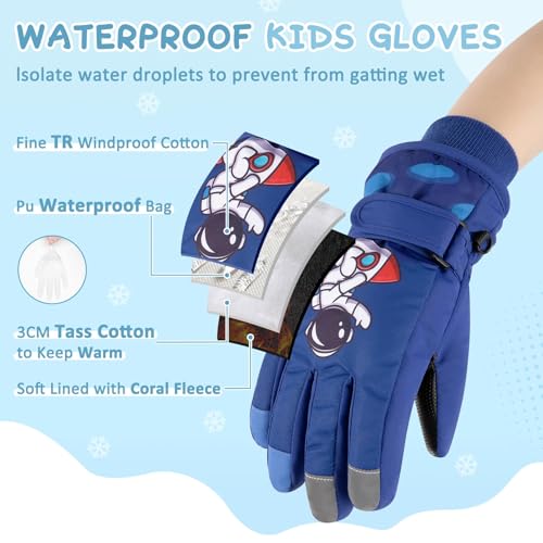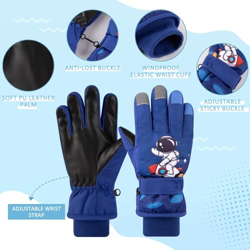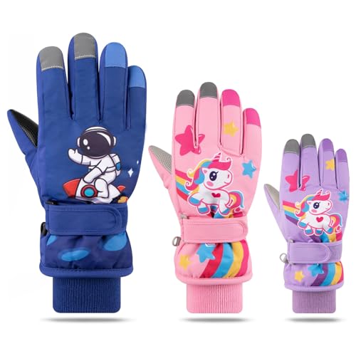 YQZenith - قفازات التزلج على الجليد للاطفال الاولاد والبنات، قفازات شتوية دافئة للاطفال الصغار، قفازات مقاومة للماء للطقس البارد