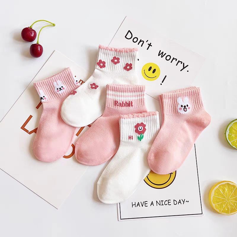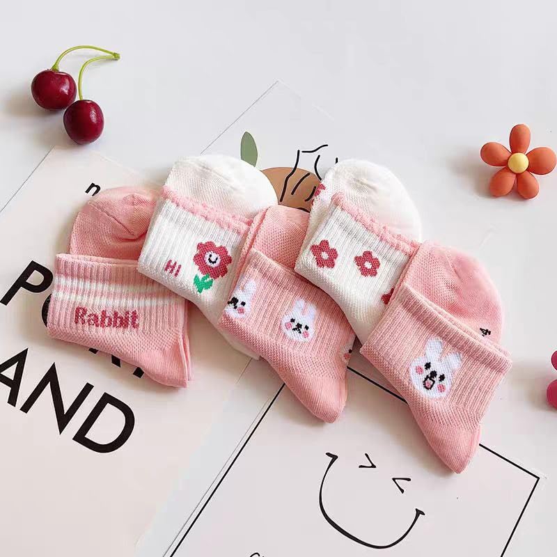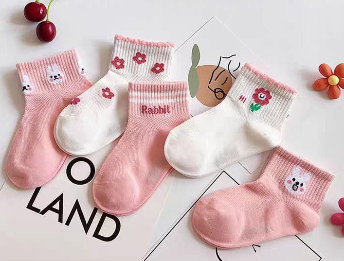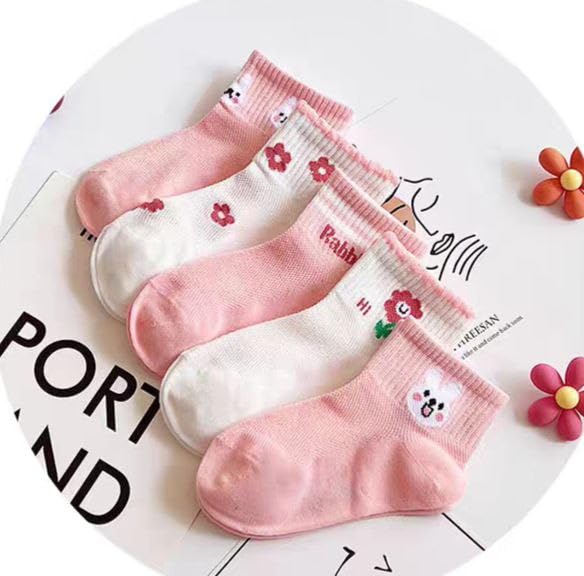 Generic - جوارب للأطفال – بنات – كاجوال – من سن 7 إلى 8 سنوات – مجموعة من 5 ازواج + واحد هدية – (Hi Rabbit)