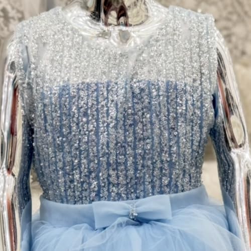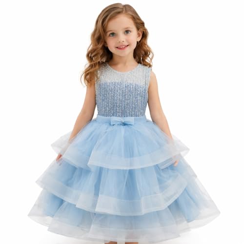 Generic - فستان سواري أطفال يلبس (5-6) سنوات للبنات منفوش تول أزرق فاخر فستان حفلات وزفاف وأعياد ميلاد تصميم أميرة أنيق ولامع للأطفال مناسب للتصوير والمناسبات الخاصة