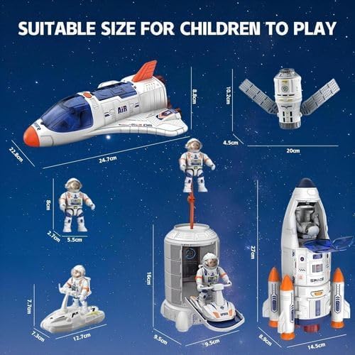 - مجموعة ألعاب الفضاء التفاعلية - تتضمن صاروخ ومكوك ومحطة فضاء واثنين من رواد الفضاء لمغامرات مهمة لا نهاية لها.