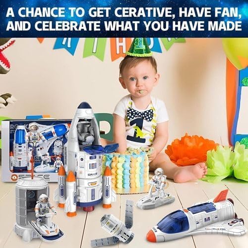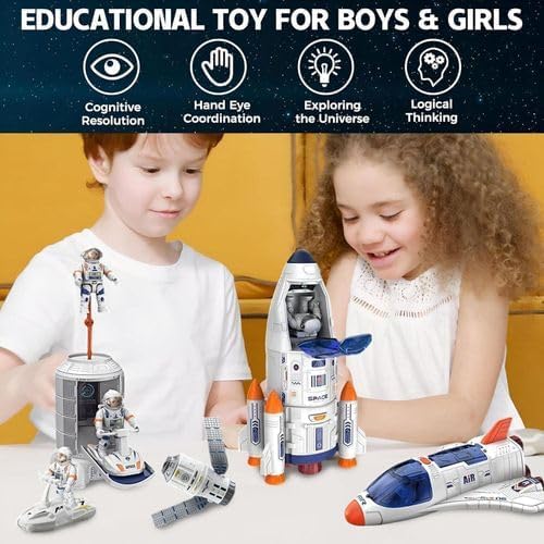Generic - مجموعة العاب صواريخ الفضاء للاطفال (للاعمار من 3 سنوات فما فوق) - متعة تعلم العلوم والتكنولوجيا والهندسة والرياضيات مع اضواء واصوات - تتضمن شخصيات رائد فضاء ومكوك ومركبات ومحطة فضائية - هدية تعليمية