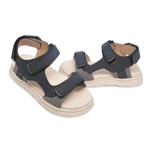 generic - صندل رياضي للأطفال مع شريط فيلكرو مزدوج ونعل مبطن، لون أزرق كحلي وأبيض