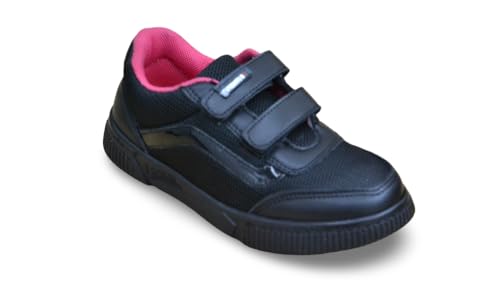 generic - حذاء رياضي للاطفال مع احزمة، اسود وزهري، جزء علوي شبكي × 9 غرام