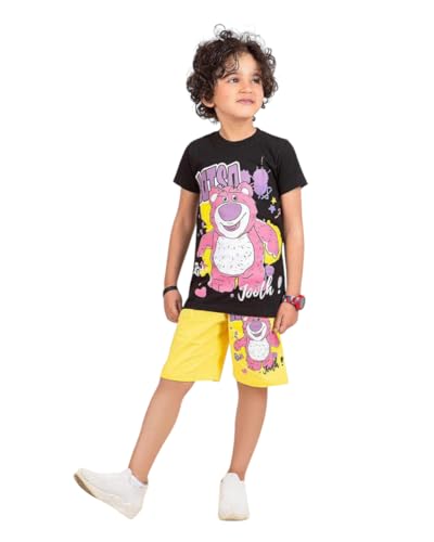 Generic - طقم صيفي اطفال قطن ١٠٠%تيشرت اسود وشورت اصفر برسمة مقاس 8سنوات