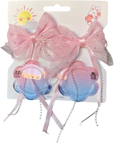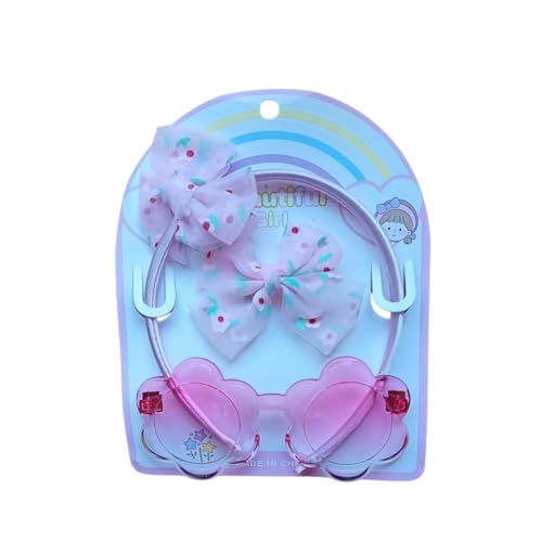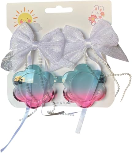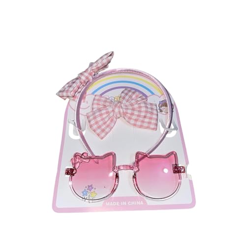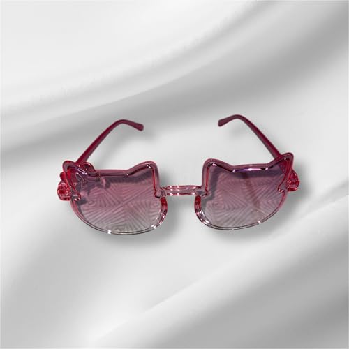 Generic - نظارات شمسية للأطفال على شكل قطة مع فيونكة كاروهات، إطار بلاستيكي وردي، تصميم كرتوني جذاب مع قوس قزح متعدد الاشكال والالوان